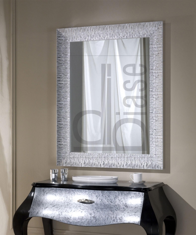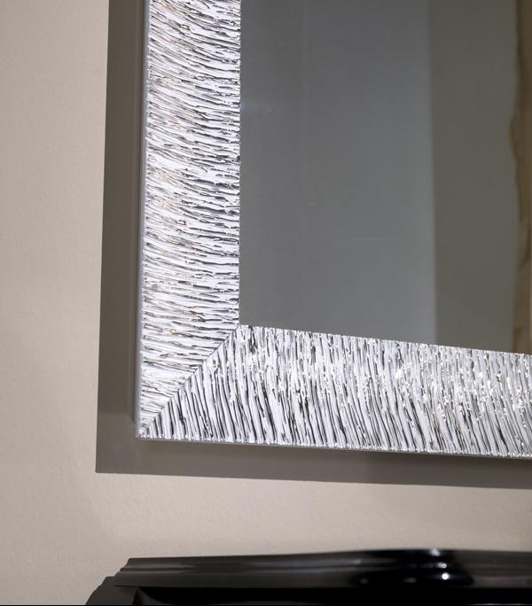 finitura: laccata bianca lucida con particolari foglia argento brillante